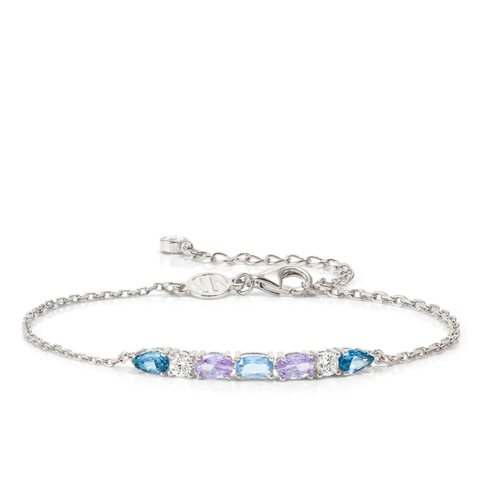Подчеркните свой стиль с браслетом Colour Wave, украшенным мерцающими нежно-лавандовыми, светло-голубыми и белыми кубическими цирконами различных форм, закрепленными на стерлинговом серебре. Это изящное украшение добавит нотку яркой элегантности любому образу.