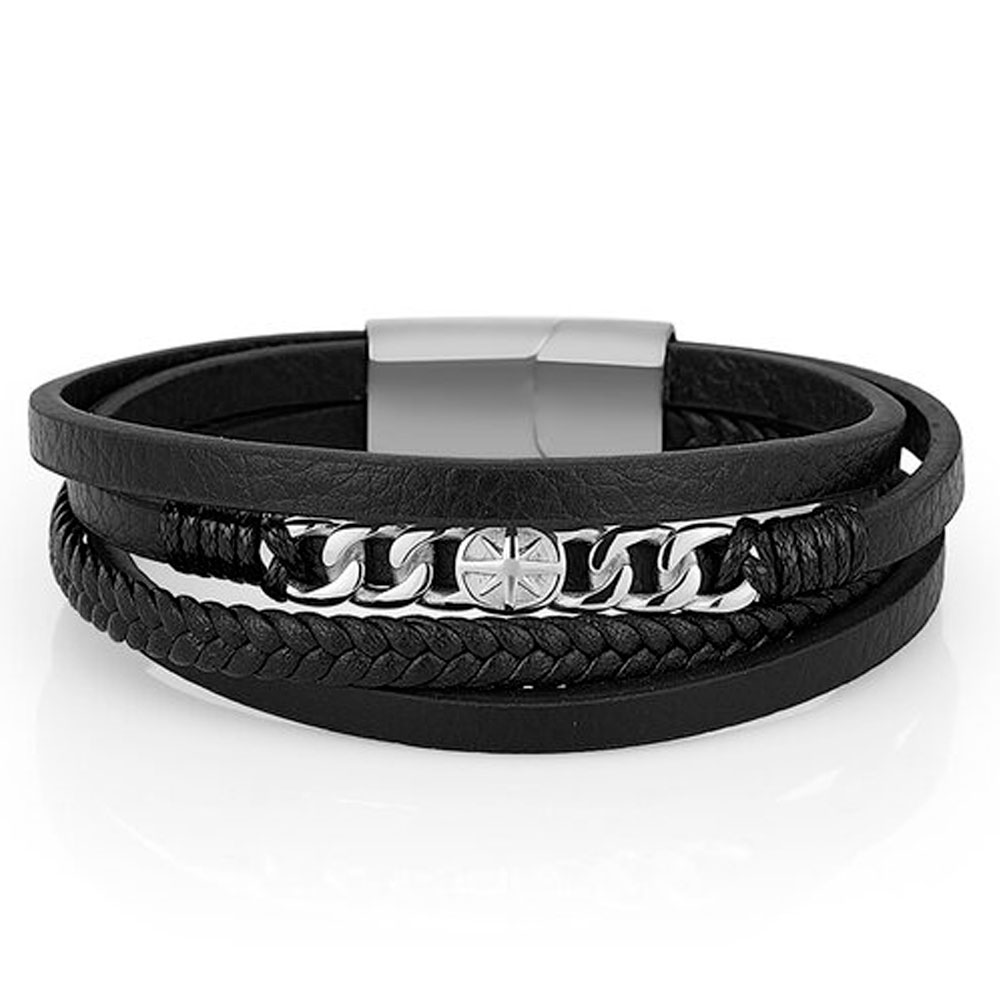 Этот модный аксессуар выполнен из искусственной кожи, что делает его прочным и удобным в использовании. Черный цвет браслета подойдет к любому образу, делая его универсальным и стильным дополнением.