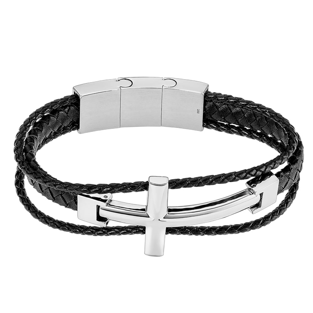 Мужской браслет Lotus из нержавеющей стали, с крестом и вставками из кожи