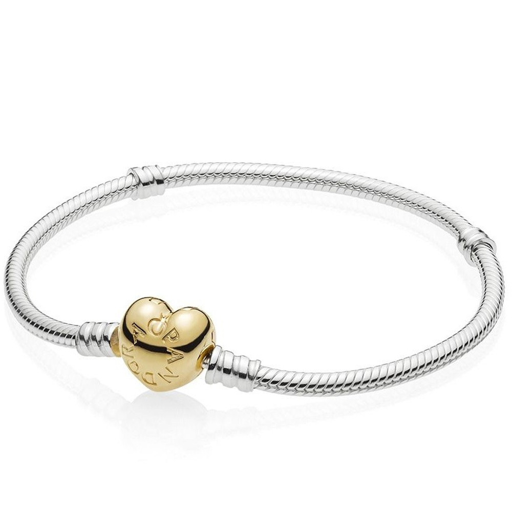 Новая версия классического серебряного браслета Moments с замком в виде сердца, выполненного из PANDORA Snine. Носите на нем свои любимые шармы