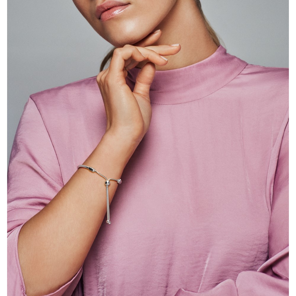 Классический лаконичный браслет будет идеальной основой для коллекции шармов. Замок в виде бусины позволяет легко регулировать длину браслета. Кончики инкрустированы кубическим цирконием.
