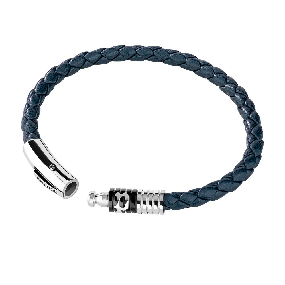 Особое внимание привлекают декоративные металлические вставки с логотипом POLICE — узнаваемый элемент, подчёркивающий статус и вкус владельца. Этот аксессуар легко комбинируется с часами или цепочкой, другими браслетами и одеждой в разных стилях, добавляя образу динамичности и энергии.