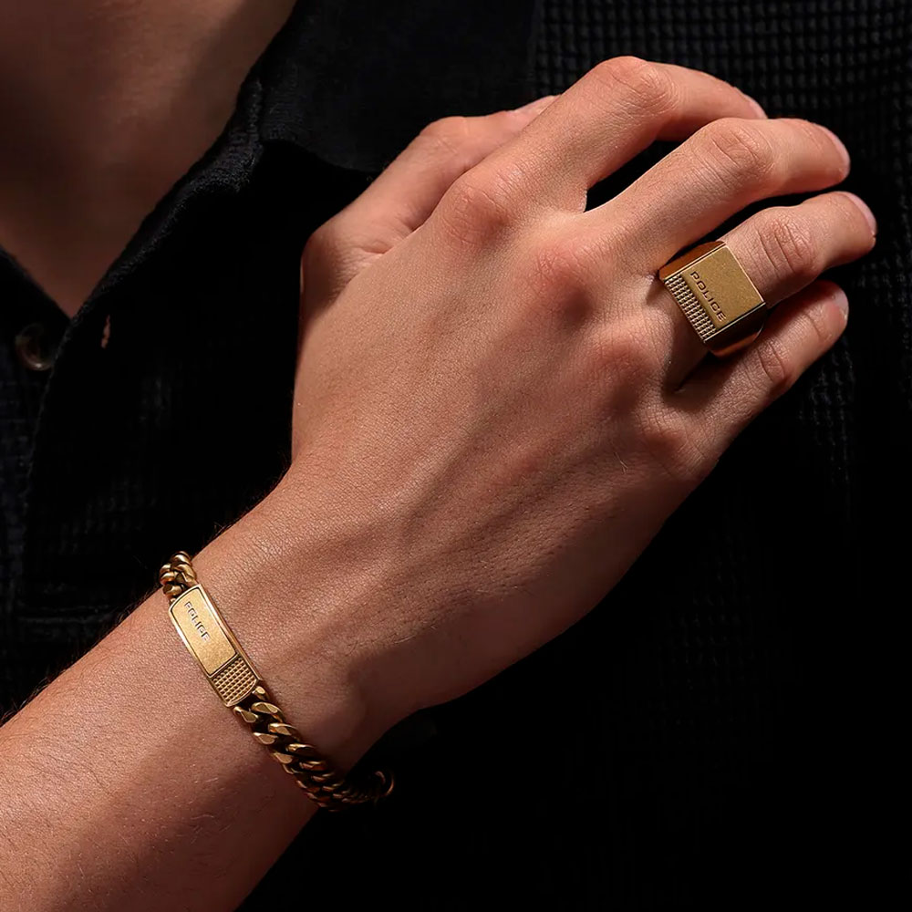 Браслет металлический на руку от бренда POLICE PEAGB0041002 — это премиальная мужская бижутерия, выразительное и стильное украшение для мужчины, который не боится выделяться и заявлять о себе. Выполненный в виде на руку цепочки в насыщенном золотистом цвете, он привлекает внимание с первого взгляда и подчёркивает силу, уверенность и харизму своего владельца. Металлическая вставка с названием брендового POLICE делает акцент на принадлежность к премиальному классу, а надёжная застёжка-карабин обеспечивает удобную и прочную фиксацию аксессуара на запястье.