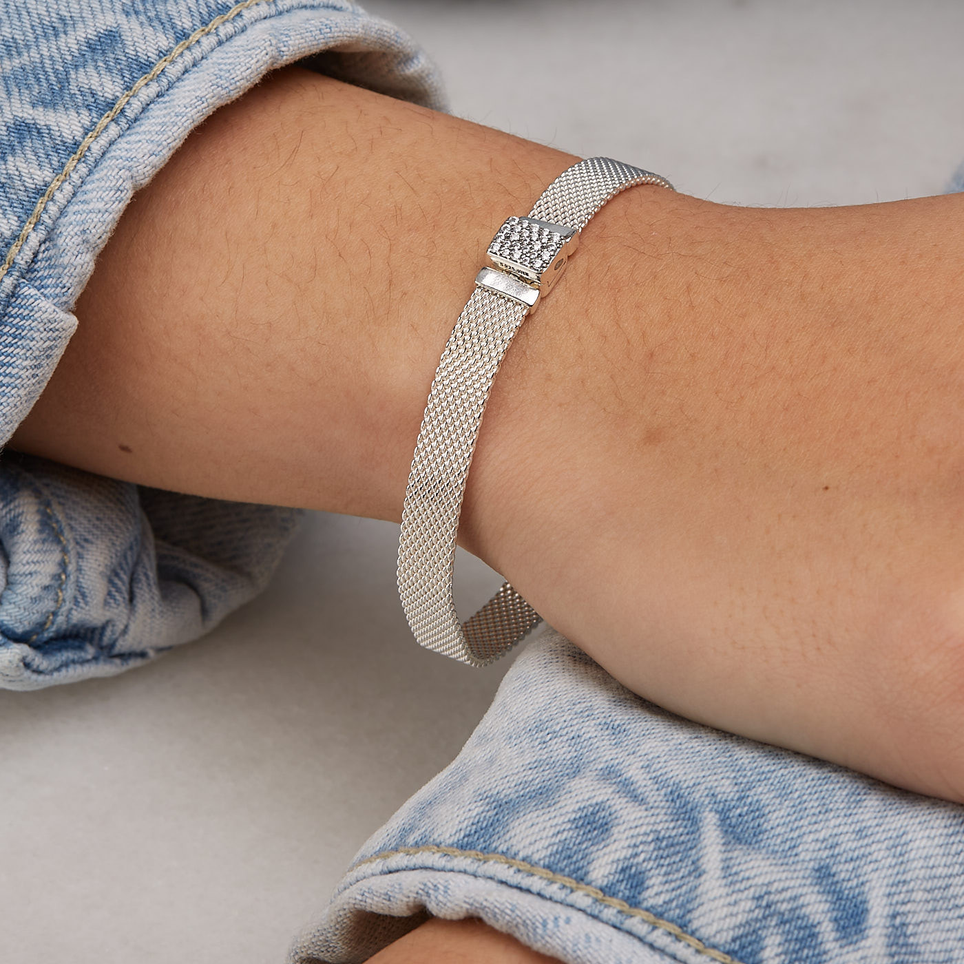 Браслет Reflexions со сверкающим замком из серебра 925 пробы с камнями кубического циркония. Носите браслет с клипсами Reflexions для создания неповторимого образа.