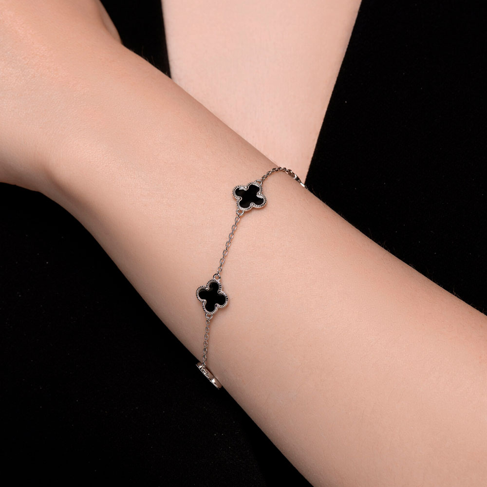 Размер: 17, Материал: Серебро, Вставка: Эмаль, Тип браслета: Классический, Для кого: Для женщин