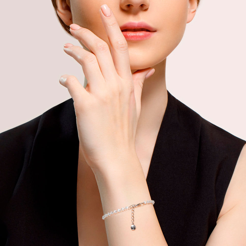 Размер: 17; Регулируемый, Материал: Серебро, Вставка: Фианиты, Тип браслета: Классический