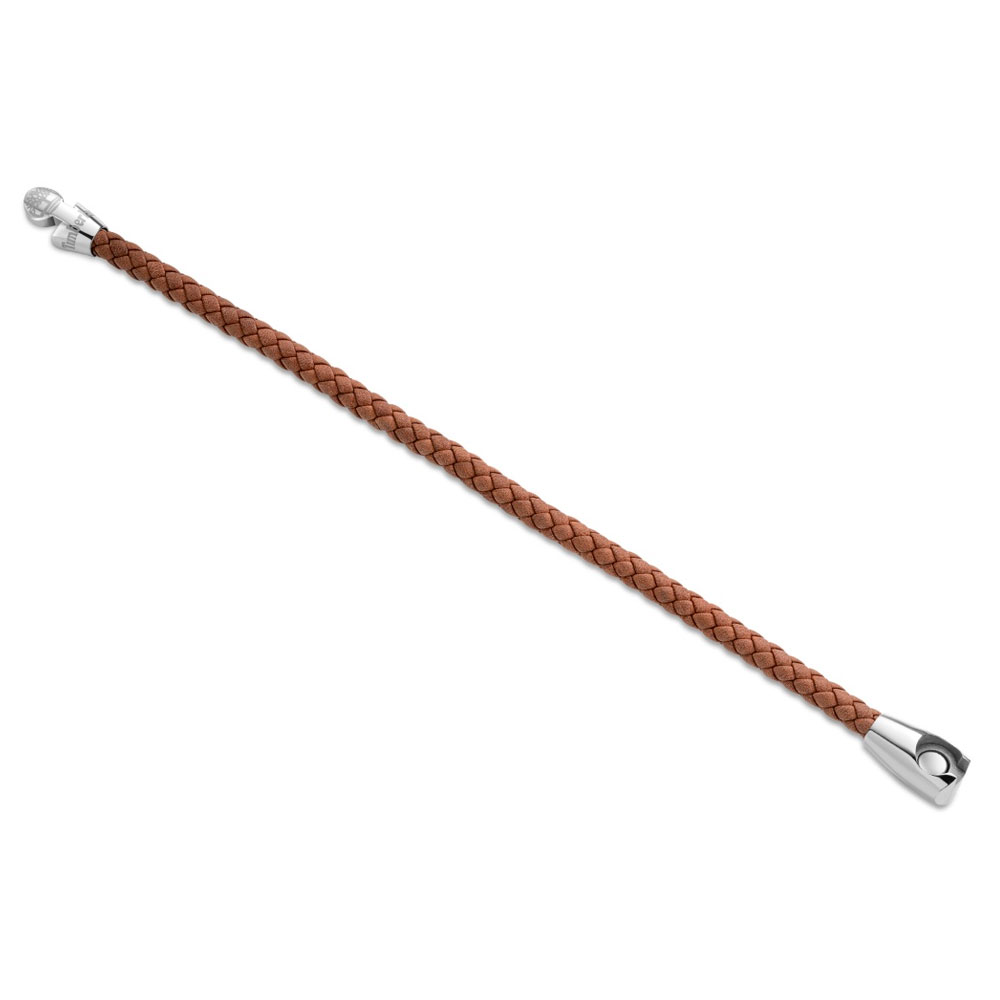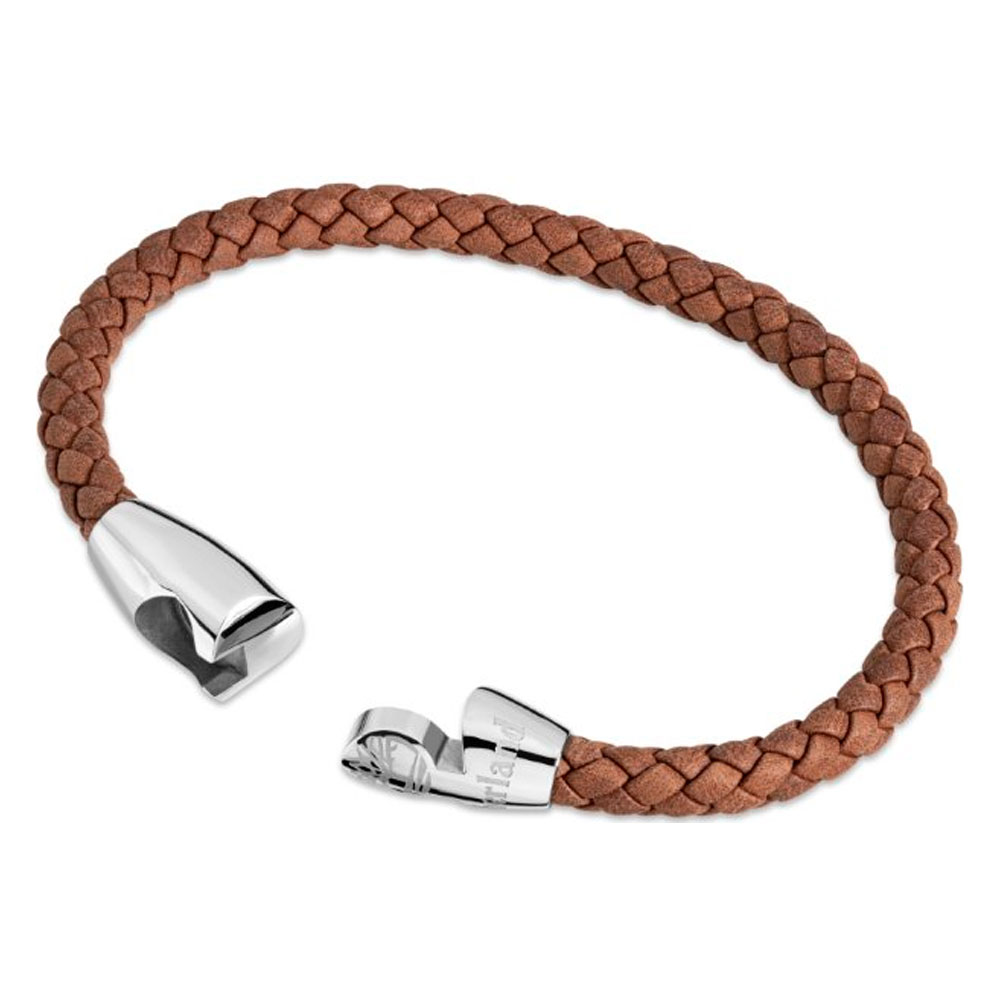 Браслет из нерж. стали и коричневой плетеной кожи теленка