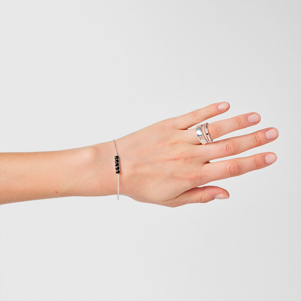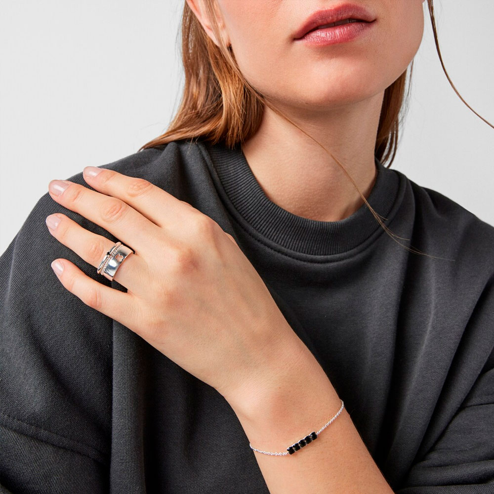 Браслет TOUS Mini Onix из серебра высшей пробы с 5 мишками из оникса.