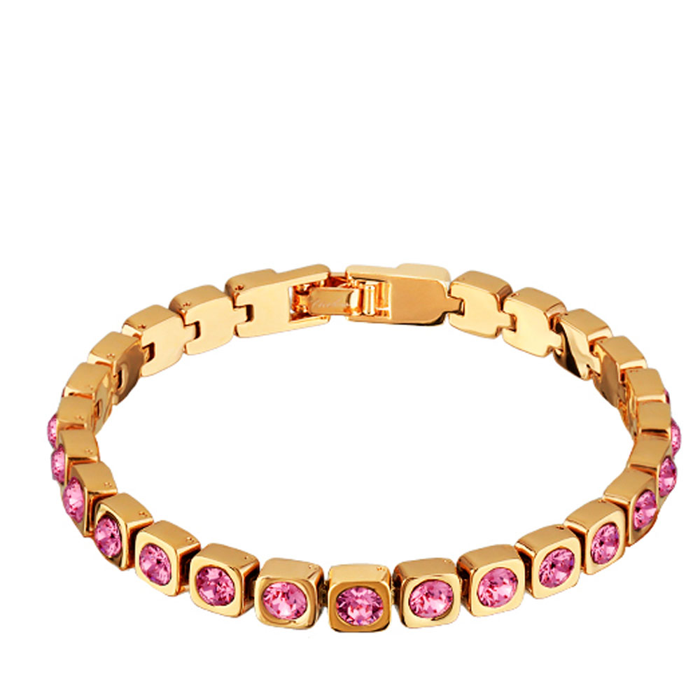 Описание: Изготовлено из ювелирного сплава на основе латуни с гальваническим покрытием золотом. Изделие украшают кристаллы SW белого цвета диаметром 4мм. Длина 17-19см.