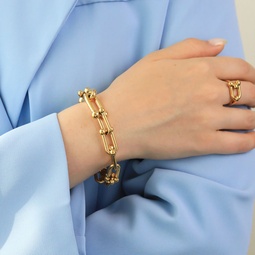 Описание: Изготовлено из ювелирного сплава на основе латуни с гальваническим покрытием золотом. Длина 19см. Ширина 0, 8-1, 5см.