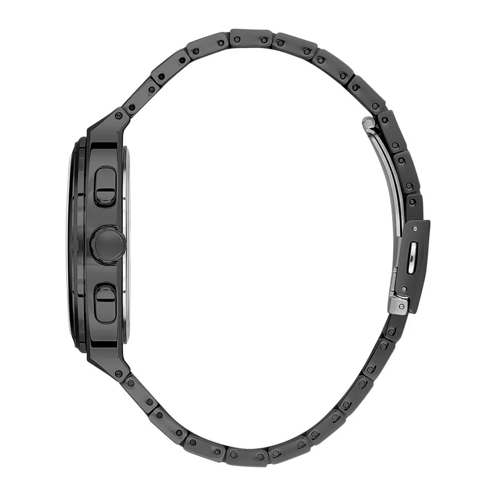 Корпус часов из прочного сплава (Alloy) в черном цвете гармонично сочетается с черным браслетом из нержавеющей стали, который не только стильно выглядит, но и обеспечивает долговечность. Ширина ремешка составляет 23 мм, а его длина — 170 мм, что гарантирует комфортную посадку на запястье. Кроме того, минеральное стекло защищает циферблат от царапин и внешних повреждений.
