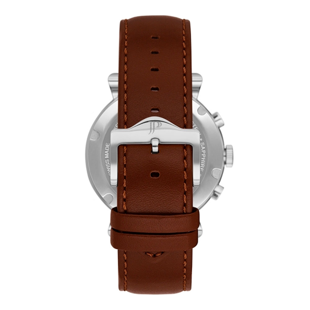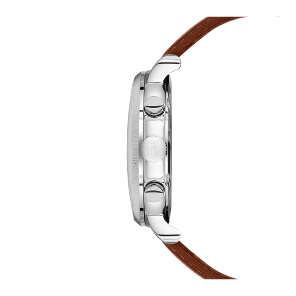 Мужские часы Jacques Philippe Vintage JPQGC191121N излучают ретро-шарм с полированным стальным корпусом круглой формы, подчёркивающим зрелую уверенность и стиль владельца.