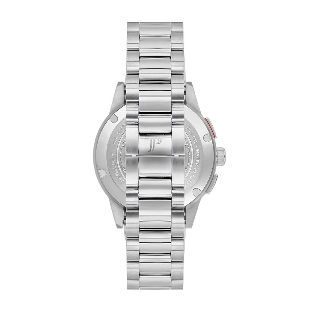 Швейцарские мужские часы-хронограф с секундомером Jacques Philippe Globus JPQGC288347, кварцевый механизм с высокой точностью. Сапфировое стекло устойчивое к появлению царапин, обладающее высокой прозрачностью. Корпус часов изготовлен из нержавеющей стали. Безель из стали с тахиметром. На циферблате три дополнительных индикатора. Окошко даты находится в положении 6 часов. Стрелки с люминесцентным покрытием. Класс водозащиты: 100 метров, позволит плавать, нырять и заниматься другими водными видами спорта. Стальной браслет на застёжке «бабочка» с кнопками.