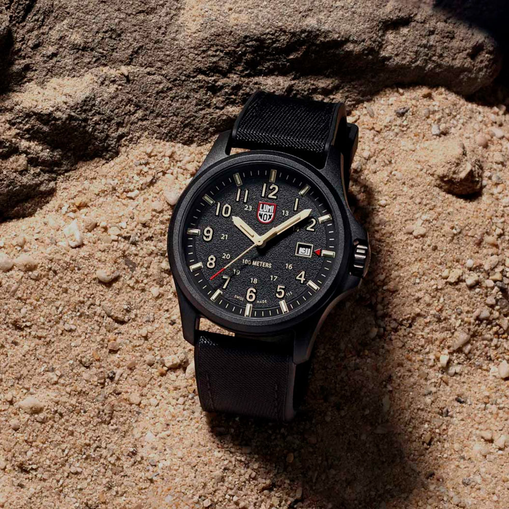 Надежные часы от Luminox созданы для активных мужчин, не представляющих свою жизнь без приключений. Atacama Field. Серия часов получила одноименное название с пустыней в Южной Америке - Атакама (Atacama), которая считается самой сухой пустыней в мире. Текстурированный циферблат напоминает местность и суровый ландшафт пустыни. 12-ти и 24-х часовой формат времени. Метки в виде штрихов и арабских цифр. Специальная технология LLT обеспечивает непревзойденную ночную видимость на протяжении 25 лет. Окошко даты находится в положении 3 часа. Заводная головка с защитой и дополнительными прокладками для герметичности. Стальная задняя крышка крепится на 4-х винтах и украшена выгравированным изображением компаса. Срок службы батареи - 50 месяцев. Ремешок с классической застежкой. В комплекте сменный нейлоновый ремешок и инструмент для его замены.