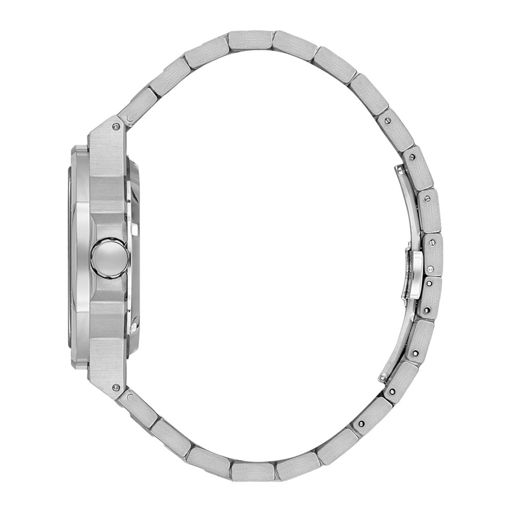 Мужские механические часы с автоподзаводом. Калибр механизма G2653. Центральные часовая, минутная и секундная стрелки. Серебристый скелетонизированный циферблат. Круглый корпус выполнен из нержавеющей стали. Диаметр корпуса составляет 43 мм. Стальной браслет, раскладывающаяся застежка. Прочное минеральное стекло устойчивое к мелким механическим повреждениям. Водостойкость WR 50 (мытье рук, дождь).