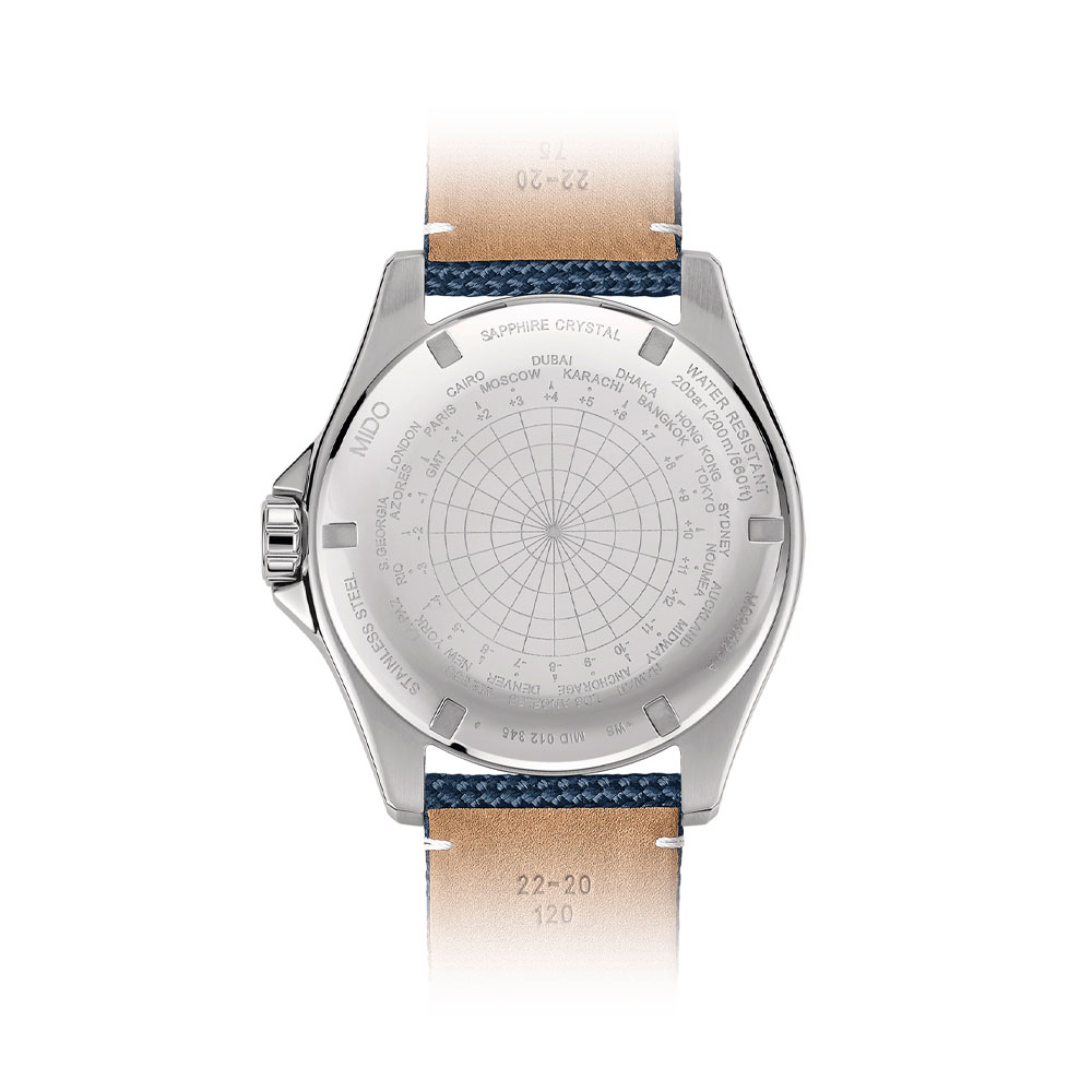 На задней крышке выгравированы часовые пояса, что упрощает настройку времени при путешествиях. Эти часы идеально подходят как для повседневного ношения, так и для приключений.