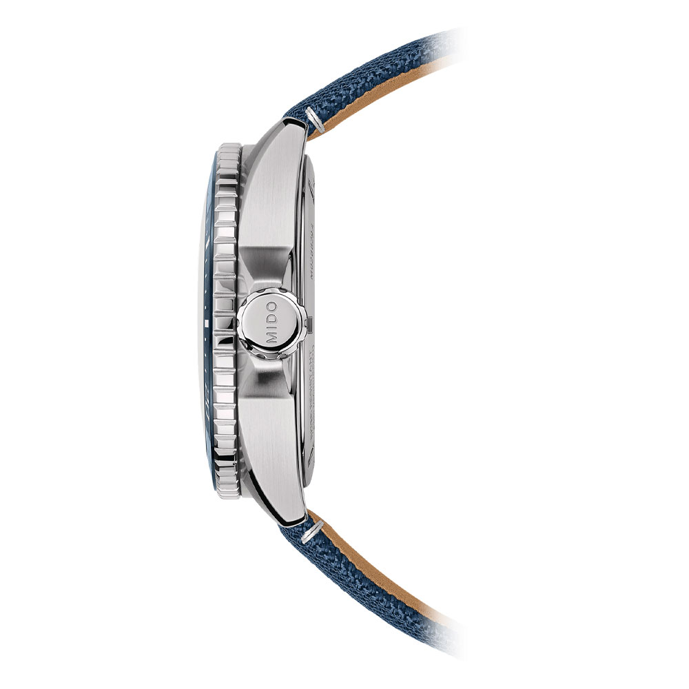 Модель оснащена автоматическим механизмом MIDO Caliber 80, обеспечивающим запас хода до 80 часов. Функционал включает индикацию часов, минут, секунд, даты в положении «3 часа» и второго часового пояса GMT.