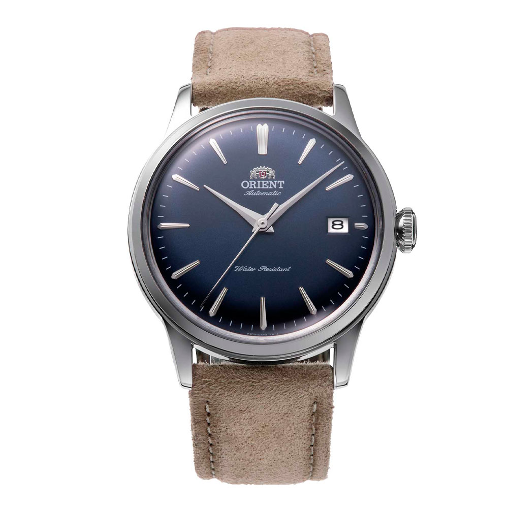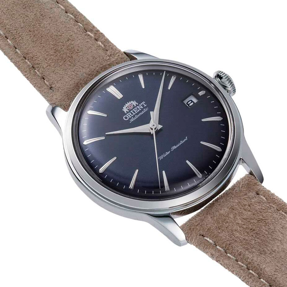 Orient Автоматический ремешок Bambino (38 мм), синий циферблат / коричневый кожаный ремешок. Bambino 7. Лимитированная серия. В механизме 22 камня, частота 21600 полуколебаний в час. Запас хода 40 часов. Возможность ручного завода. Функция stop-second. Циферблат с метками в виде штрихов. Окошко даты находится в положении 3 часа. Прозрачная задняя крышка. Ремешок с классической застежкой.