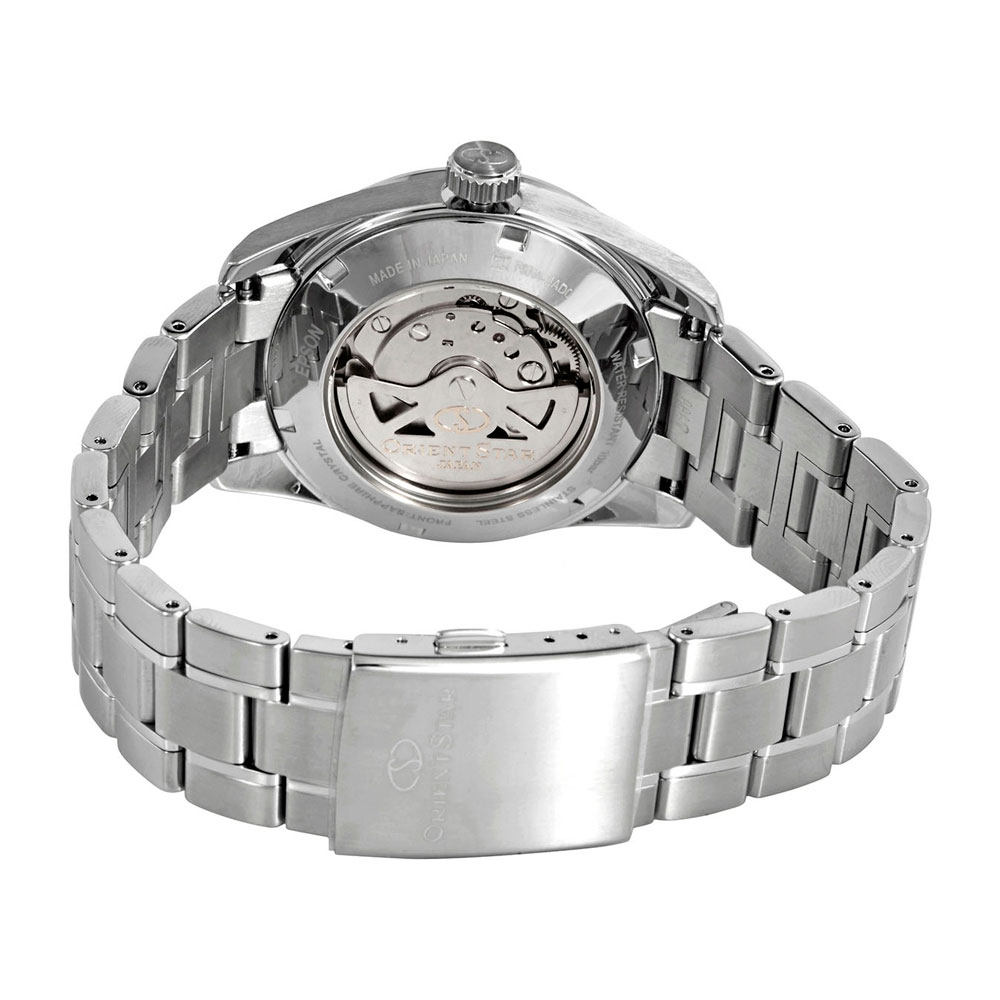Завинчивающаяся прозрачная задняя крышка позволяет наблюдать за работой механизма. Стальной браслет на раскладной застёжке обеспечивает удобное и надежное крепление на руке.