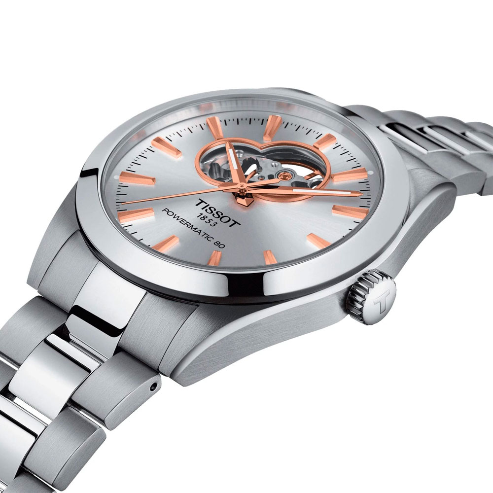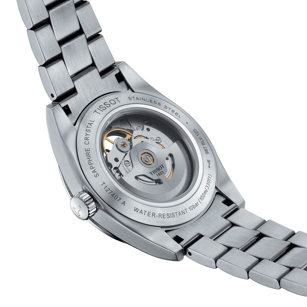 Классическая модель с корпусом и браслетом из нержавеющей стали имеет монохромное исполнение. Сдержанный внешний вид позволяет носить часы хоть каждый день. Внутри находится революционный механизм Powermatic 80 Silicium с кремниевой спиралью, считается наиболее точным калибром за всю историю существования Tissot. Задняя крышка прозрачная. Сапфировое стекло. Застежка бабочка с кнопками. Водостойкость 100 метров. Индикация даты. Габариты: 40 x 40 x 11,5 мм.