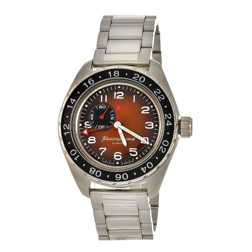 Мужские наручные часы Восток Командирские 02017А. Механические с ручным подзаводом. Браслет из нержавеющей стали. Браслет из нержавеющей стали. Органическое стекло. Часы являются водонепроницаемыми до 20 Бар. Цвет циферблата: Серебристый. Цвет циферблата: Черный. Цвет корпуса: Коричневый. Цвет корпуса: Черный. На стрелки и отметки нанесен светонакопительный состав, благодаря этому считывать информацию с циферблата возможно и в темноте. Толщина: 15 мм.