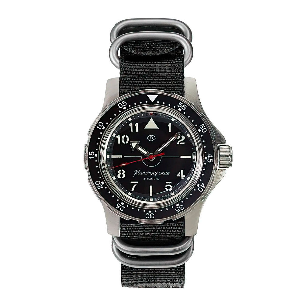 Мужские наручные часы Восток Командирские 18022А. Механические с ручным подзаводом. Текстильный ремешок. Браслет из нержавеющей стали. Органическое стекло. Часы являются водонепроницаемыми до 20 Бар. Цвет циферблата: Серебристый. Цвет циферблата: Черный. Цвет корпуса: Черный. На стрелки и отметки нанесен светонакопительный состав, благодаря этому считывать информацию с циферблата возможно и в темноте. Толщина: 13 мм.