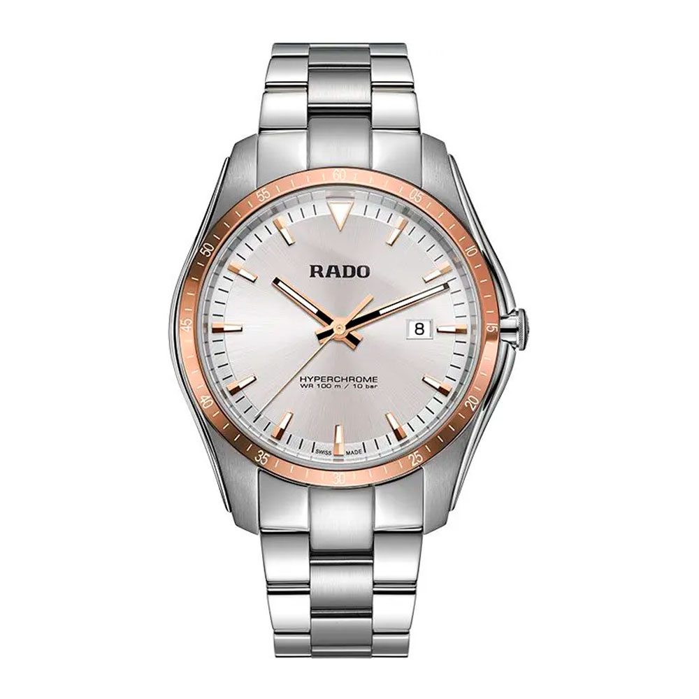 Швейцарские кварцевые часы Rado Hyperchrome R32502103. Сапфировое стекло устойчивое к мелким механическим повреждениям. Корпус изготовлен из нержавеющей стали. Безель из высокотехнологичной керамики. Стрелки с люминесцентным покрытием. Класс водозащиты: 100 метров, позволит плавать, нырять и заниматься другими водными видами спорта. Браслет из стали на раскладной застёжке.
