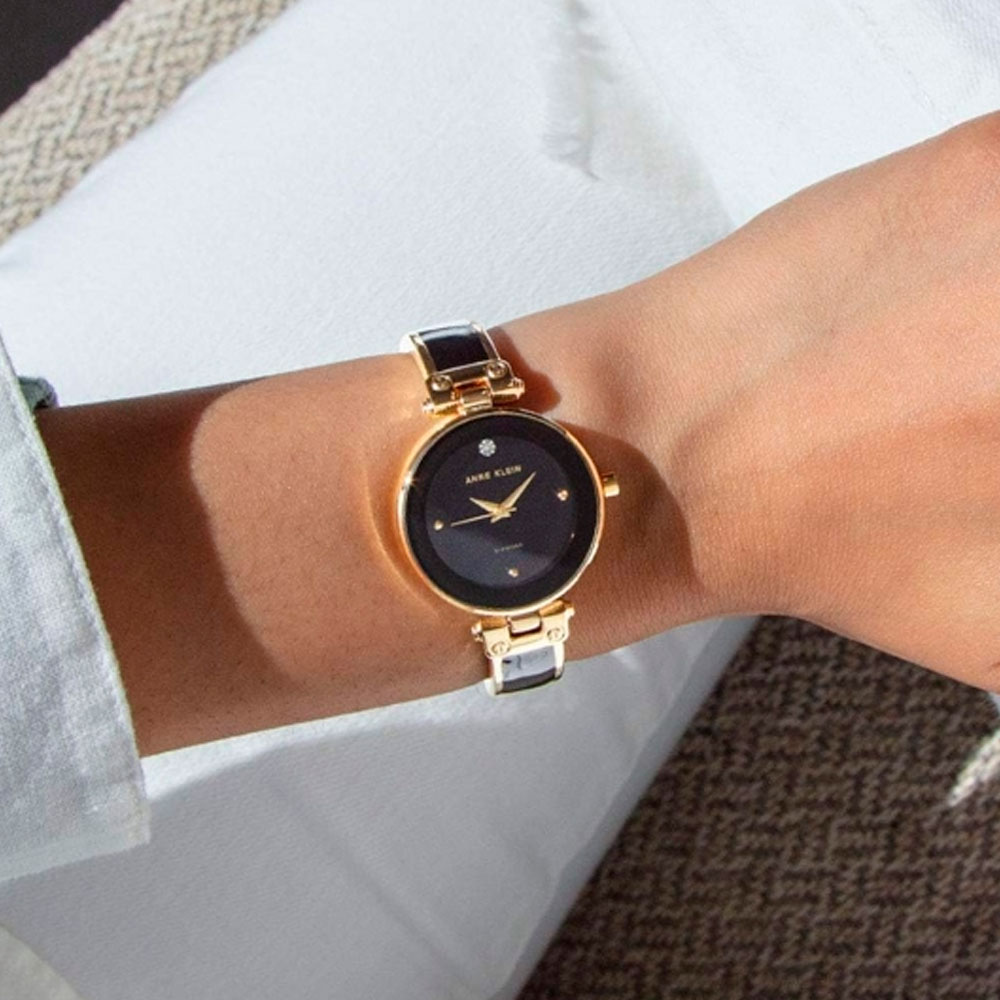 Anne Klein Diamond 1980BKRG — это изысканный акцент женственности, где золотисто-розовый браслет гармонично обрамляет глубокий черный циферблат, полный загадочного шарма.