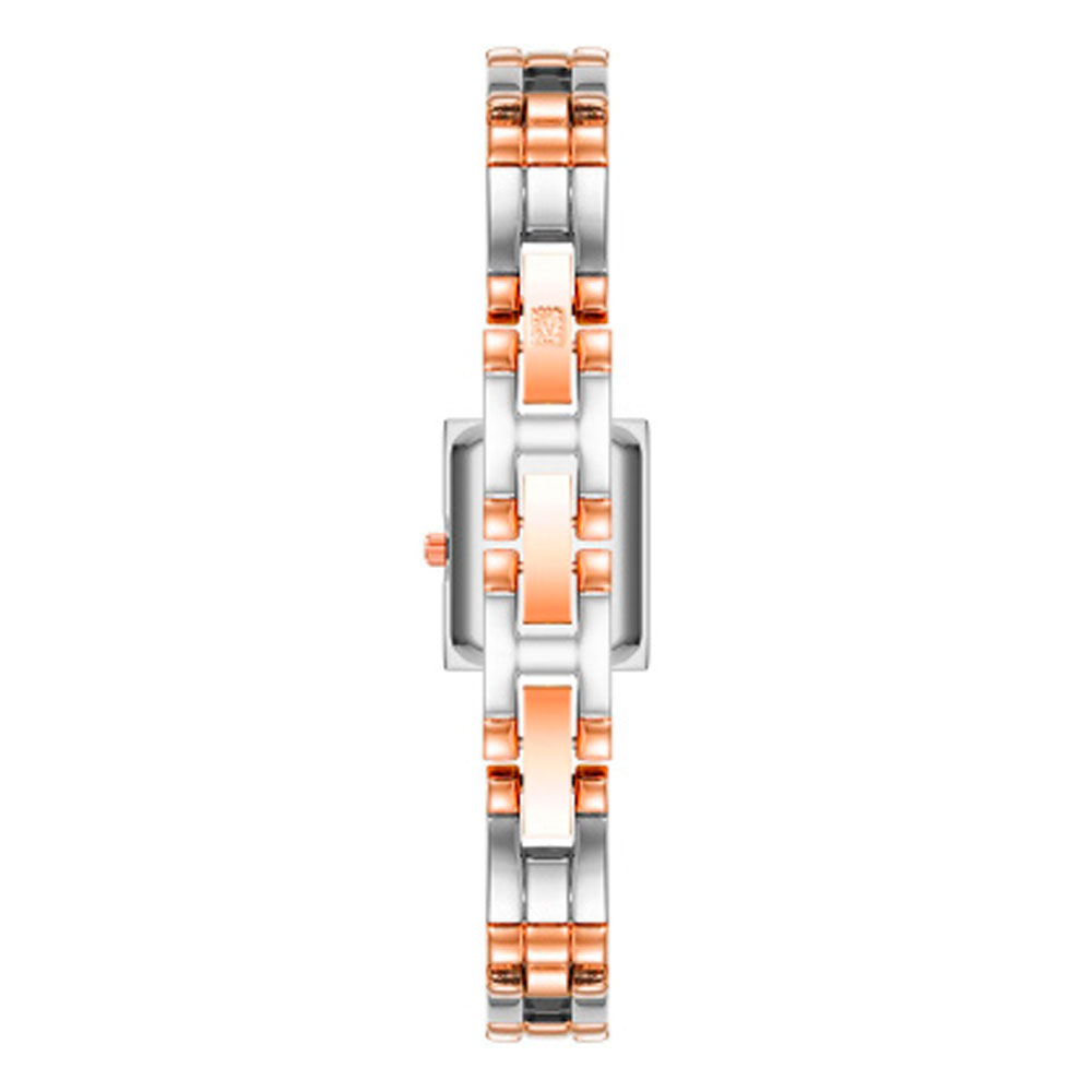 Anne Klein 4899SVRT — это серебристый шёпот изысканности на женском запястье, где компактный корпус нежно обрамляет розовый циферблат, полный мягкого романтизма.