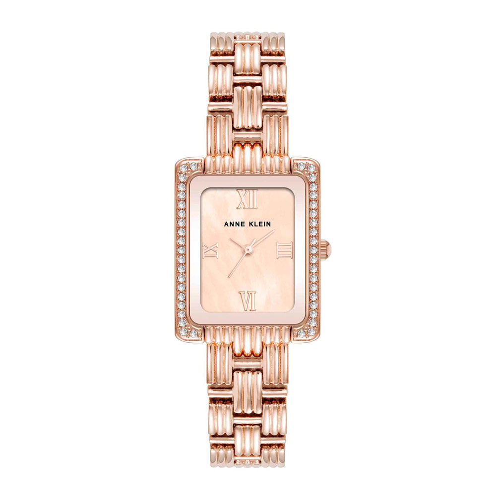 Часы Anne Klein Crystals 5168RGRG — женская модель с прямоугольным корпусом из нержавеющей стали с роскошным розово-золотистым покрытием, чьи безели щедро инкрустированы светоотражающими кристаллами, под которыми расположен элегантный циферблат с римскими цифрами и аккуратными стрелками, защищённый минеральным стеклом, внутри установлен точный японский кварцевый механизм с батарейным питанием, а степень водозащиты 3 ATM обеспечивает устойчивость к лёгким брызгам, делая модель одновременно роскошным украшением и практичным аксессуаром для повседневного ношения и вечерних выходов.