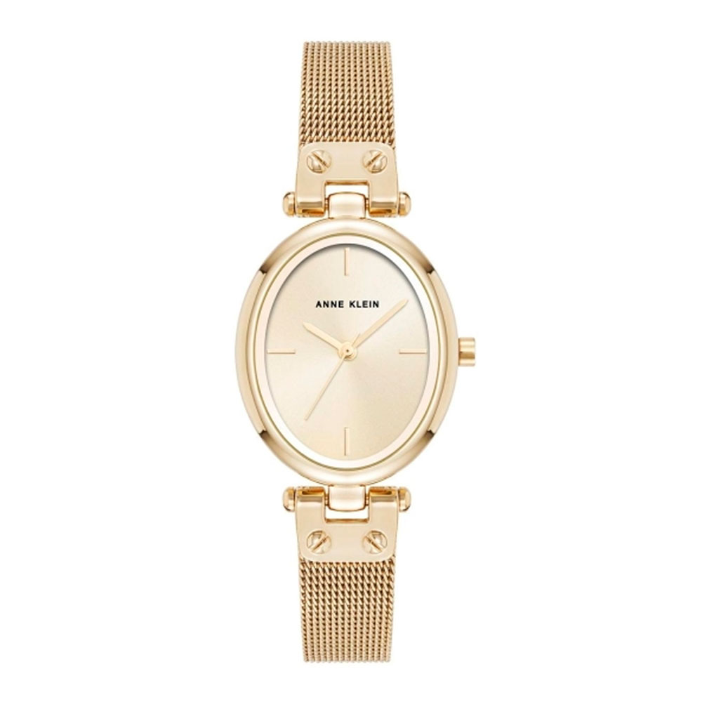 Anne Klein 5326CHGB — это золотистое сияние шампанского на женском запястье, где овальный корпус грациозно обрамляет шампанный циферблат, полный теплого блеска и элегантности.