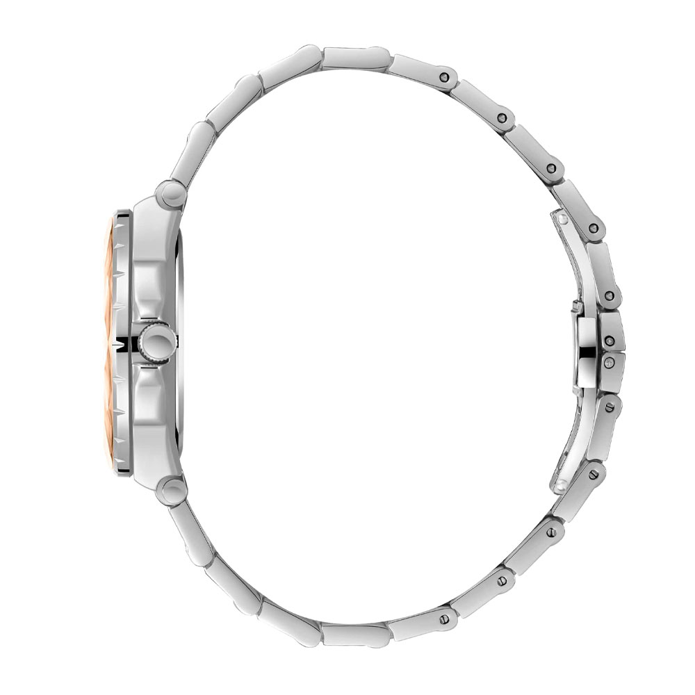 Стальной браслет с частичным IP-покрытием на застёжке-бабочке с кнопками. Часы обладают водозащитой до 30 метров, позволит защитить корпус от случайных брызг или капель дождя.