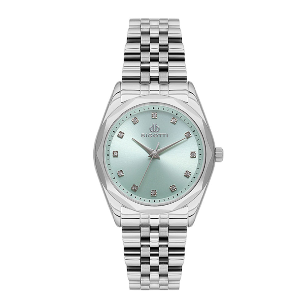 Стильные и элегантные женские часы Bigotti. Циферблат украшен кристаллами. Браслет с раскладывающейся застежкой.