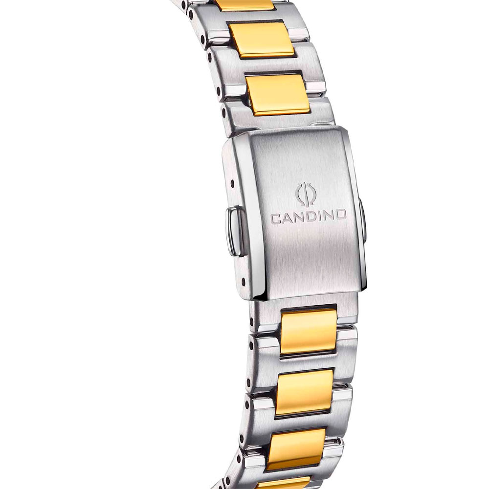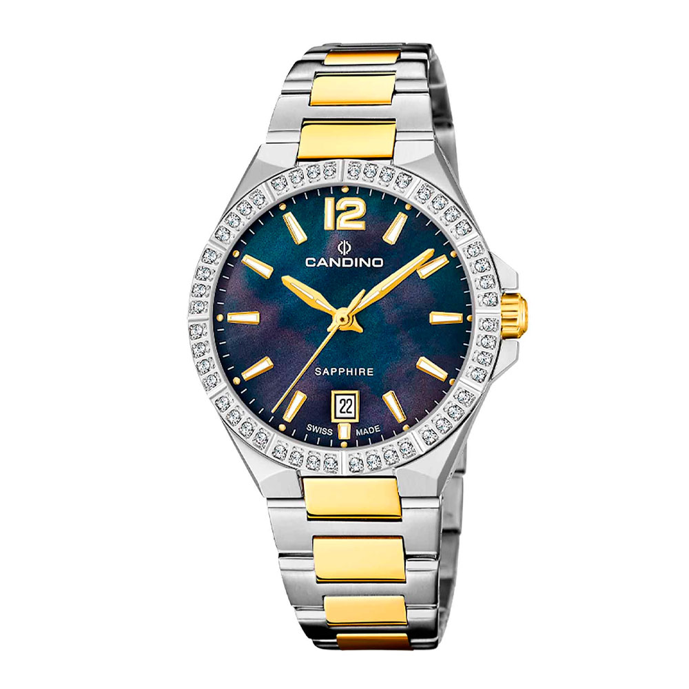Женские наручные часы Candino C4761/B из коллекции Lady Elegance сочетают в себе элегантный дизайн и надежность современных технологий. Модель обладает круглым корпусом диаметром 34 мм, изготовленным из нержавеющей стали, что обеспечивает высокую устойчивость к внешним воздействиям . Браслет выполнен из металла с частичным PVD-покрытием и с раскладной застежкой, гарантирующей комфортное ношение и безопасность . Синий перламутровый циферблат оснащен окном даты, а стрелки и метки имеют люминесцентное покрытие, обеспечивающее видимость в темноте . Для защиты используется сапфировое стекло, которое противостоит появлению царапин и обеспечивает длительную сохранность внешнего вида часов . Часы работают на кварцевом механизме, что гарантирует точное время без необходимости подзаводки . Водонепроницаемость часов достигает 5 атмосфер (50 метров), что позволяет использовать их во время повседневных водных процедур, однако не рекомендуется для плавания или дайвинга .