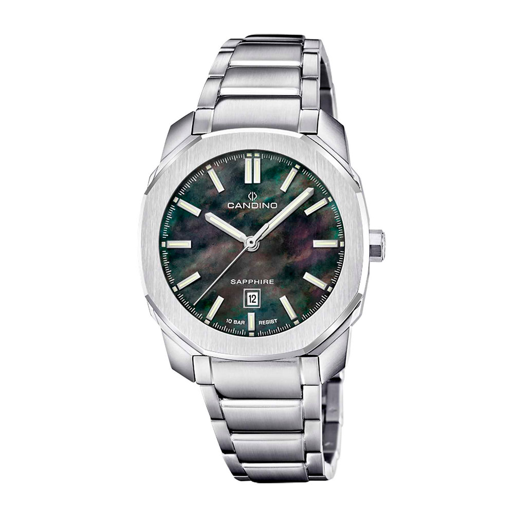 Женские наручные часы Candino C4778/8 из коллекции Lady Elegance сочетают в себе элегантный дизайн и надежность современных технологий. Модель обладает круглым корпусом диаметром 35 мм, изготовленным из нержавеющей стали, что обеспечивает высокую устойчивость к внешним воздействиям . Браслет выполнен из металла с раскладной застежкой, гарантирующей комфортное ношение и безопасность. Циферблат оснащен окном даты, а стрелки и метки имеют люминесцентное покрытие, обеспечивающее видимость в темноте . Для защиты используется сапфировое стекло, которое противостоит появлению царапин и обеспечивает длительную сохранность внешнего вида часов . Часы работают на кварцевом механизме, что гарантирует точное время без необходимости подзаводки . Водонепроницаемость часов достигает 50 метров (WR 50), что позволяет использовать их во время повседневных водных процедур, таких как принятие душа или умывание, не снимая часов .