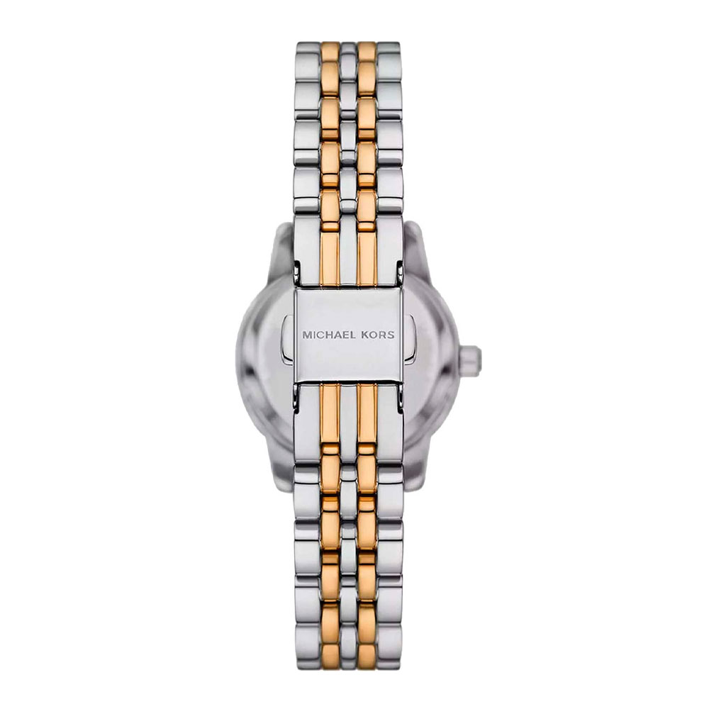 Женские кварцевые часы Mini Lexington. Перламутровый циферблат защищен минеральным стеклом. Метки в виде точек, инкрустированных кристаллами, и римской цифры XII. Безель с алмазной гранью. Надежный стальной браслет с раскладывающейся застежкой.