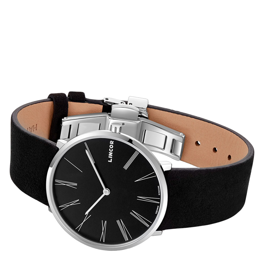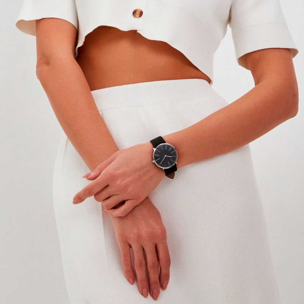сапфировым стеклом создают надёжную защиту для высокоточного японского механизма Miyota 9T22. Тонкий чистый профиль, матовый ахроматичный циферблат, словно лист бумаги для графических работ, строгие минималистичные индексы и изящные стрелки создают образ универсального аксессуара с вневременной стилистикой. Завершающим штрихом модели стал классический ремешок, повторяющий плавный изгиб корпуса, из мягкого, при этом износостойкого и практичного