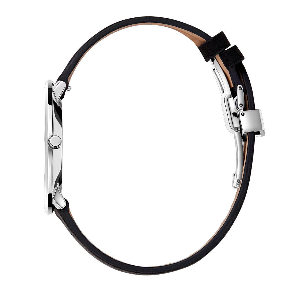 вдохновлена эстетикой минимализма. Ультратонкий корпус из нержавеющей гипоаллергенной стали диаметром 39 мм и толщиной всего 4,8 мм в сочетании с прочным