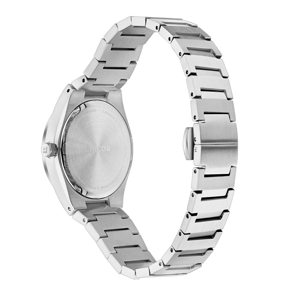 дополнен шкалами календаря, дня недели и 24-часового формата. Точный японский кварцевый механизм гарантирует безупречный ход, а водозащита 5 АТМ позволяет эксплуатировать часы в условиях повышенной влажности. Удобный браслет с матовым горизонтальным сатинированием и застёжкой-бабочкой обеспечивает комфортную посадку на запястье.