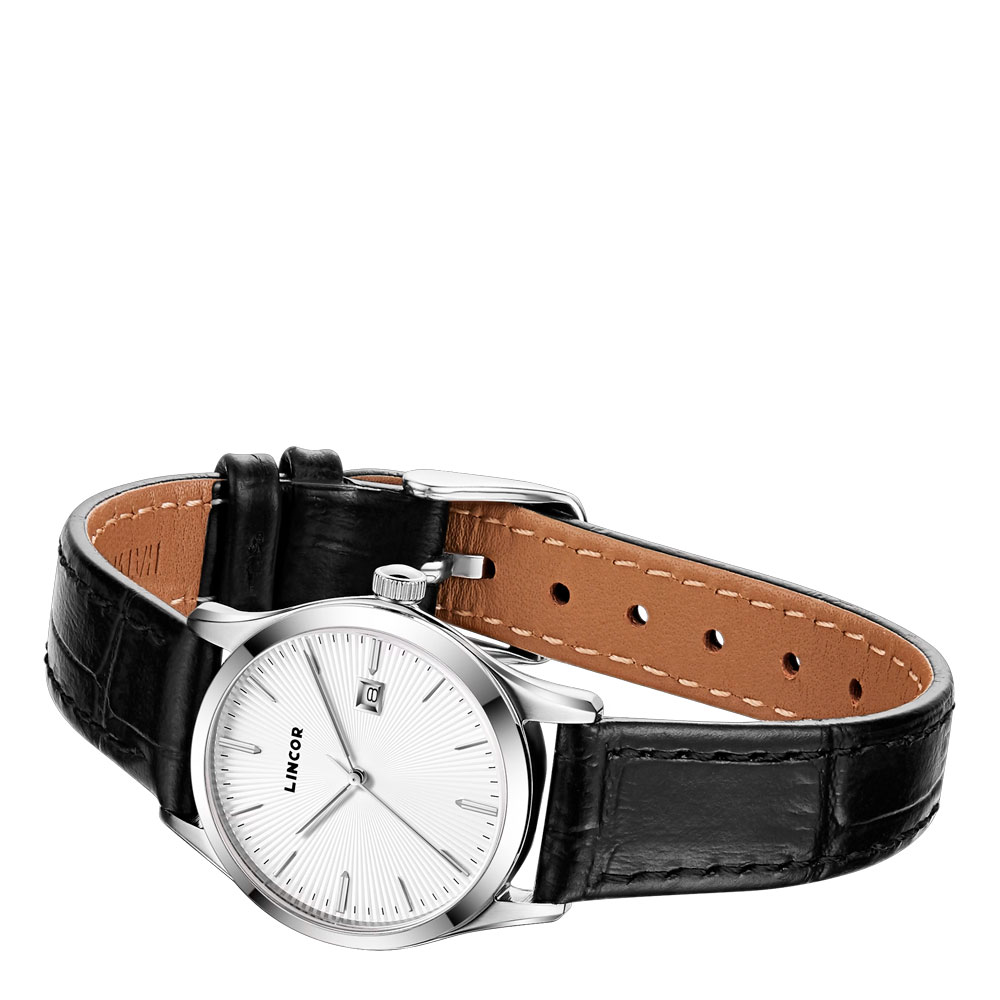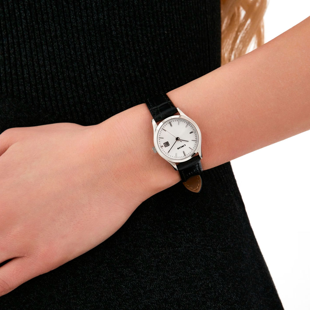 изящным тонким 27-мм стальным корпусом, который идеально прилегает к запястью, создавая непередаваемое ощущение комфорта при носке. Гильошированный циферблат защищает стойкое к царапинам и сколам стекло из лейкосапфира. Внутри установлен японский кварцевый механизм с функцией даты. Водозащита 5 АТМ.