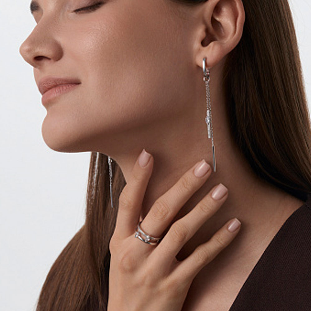 Размер: 54 / 17, Вставка: Бриллиант, Материал: Серебро, Вид дизайна: Дизайнерское, Комплект: Одно кольцо