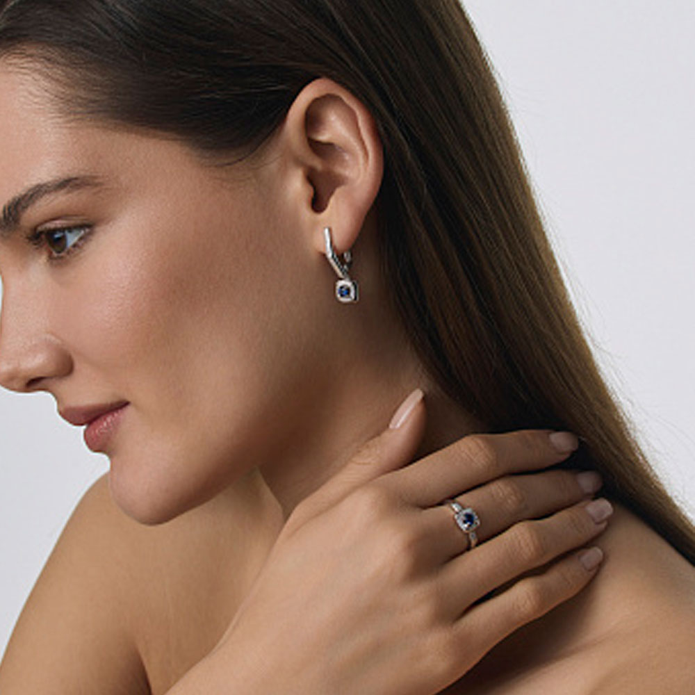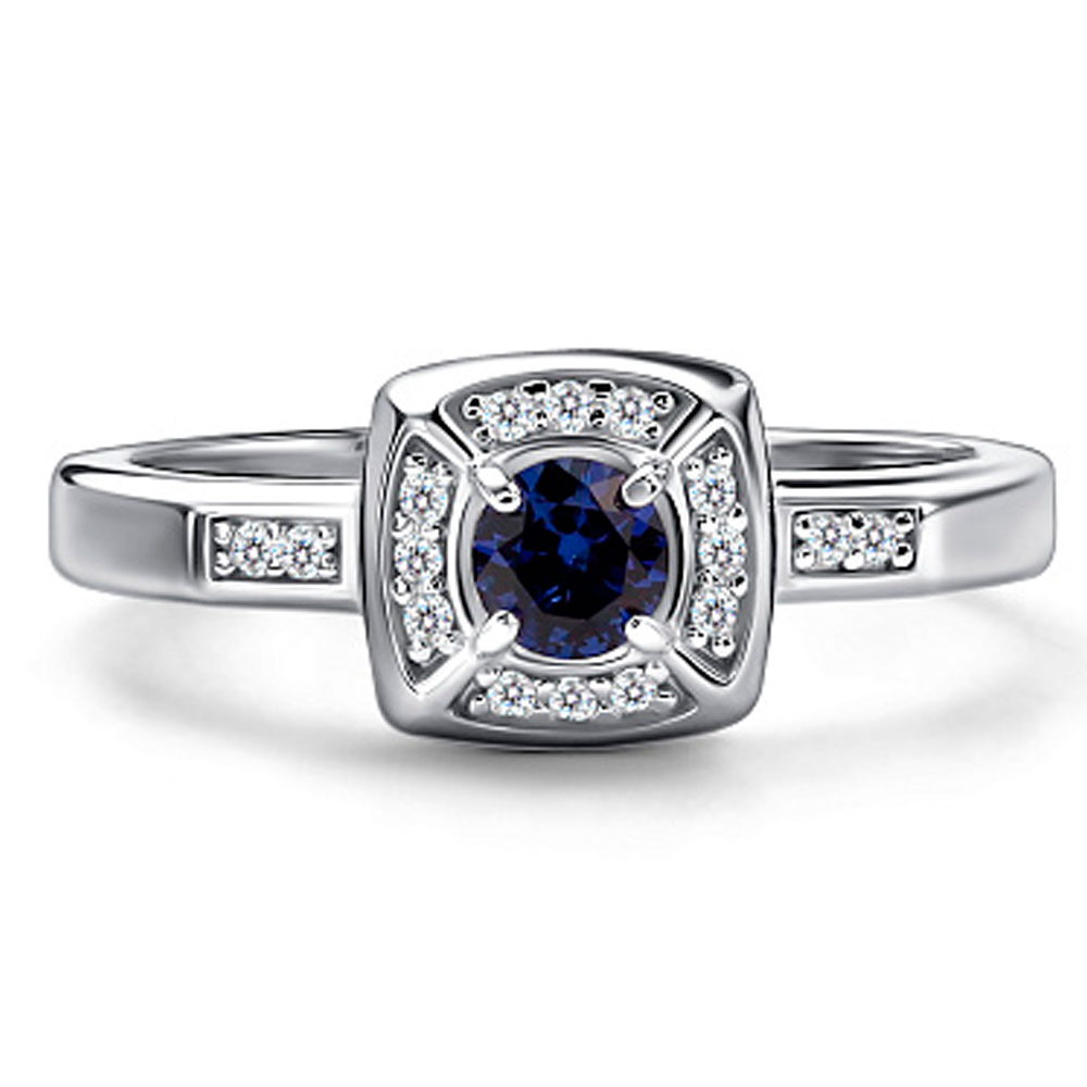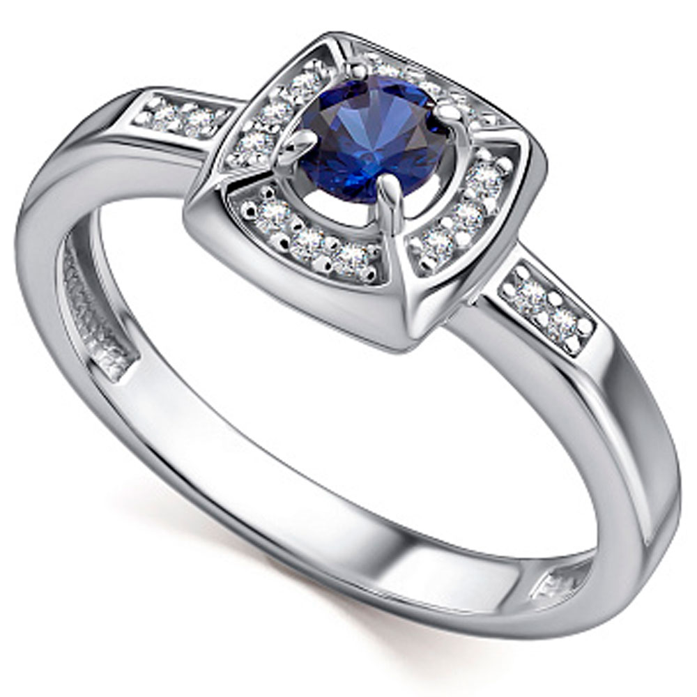 Кольцо Алькор из серебра с фианитами и сапфиром 01-4855/0ГТС-00