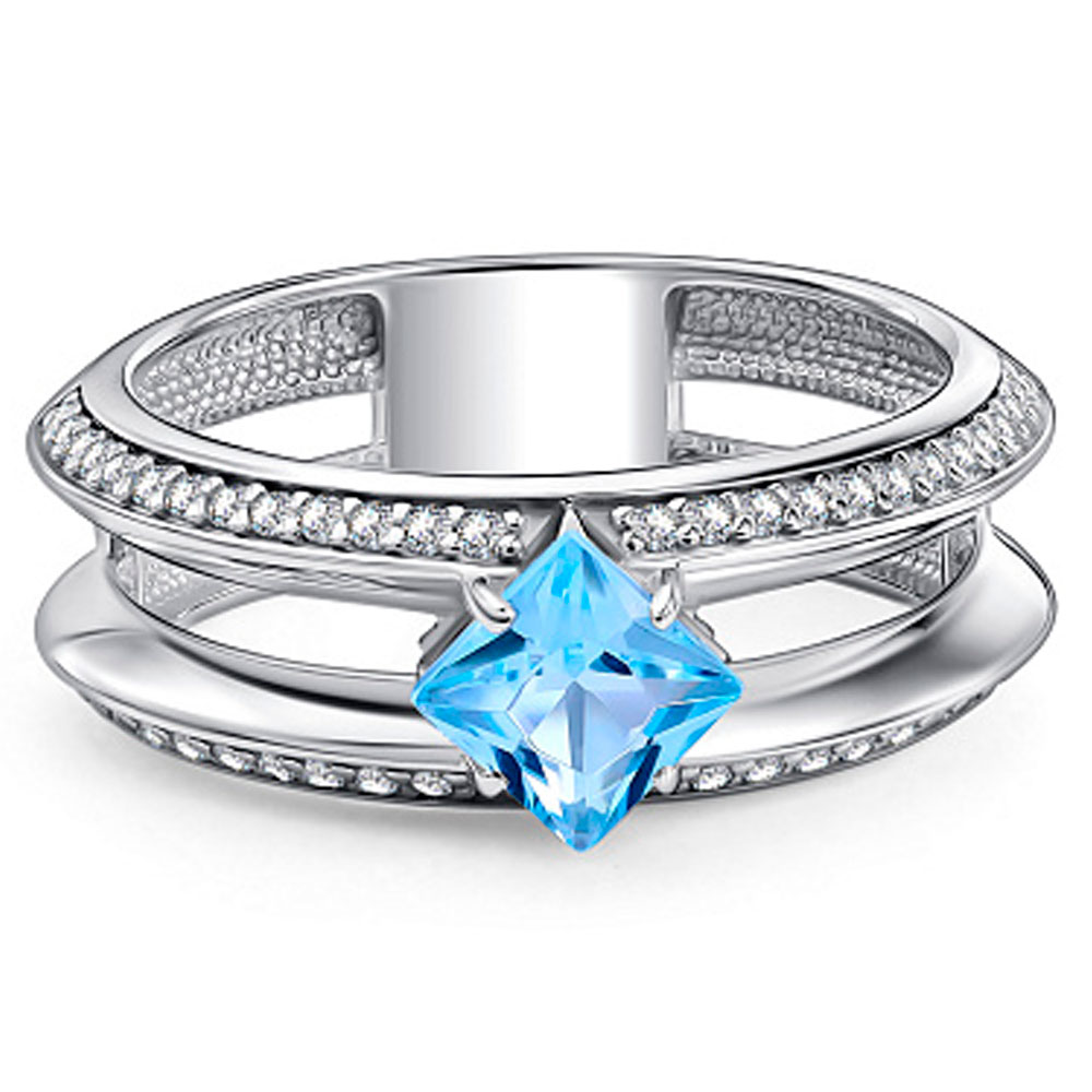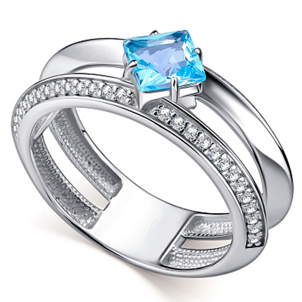 Кольцо Алькор из серебра с фианитами и топазом 01-5169/00ТБ-00
