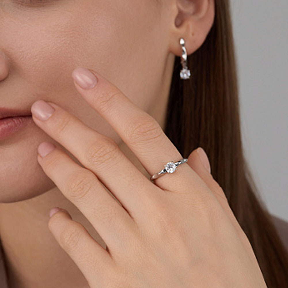Размер: 56 / 18, Вставка: Фианит; Муассанит, Материал: Серебро, Вид дизайна: Помолвочное