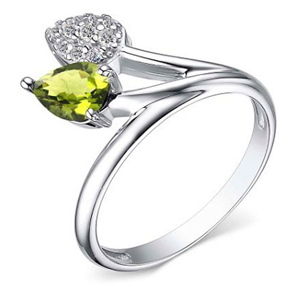 Кольцо Алькор из серебра с хризолитом и фианитами 01-4062/00ХР-00