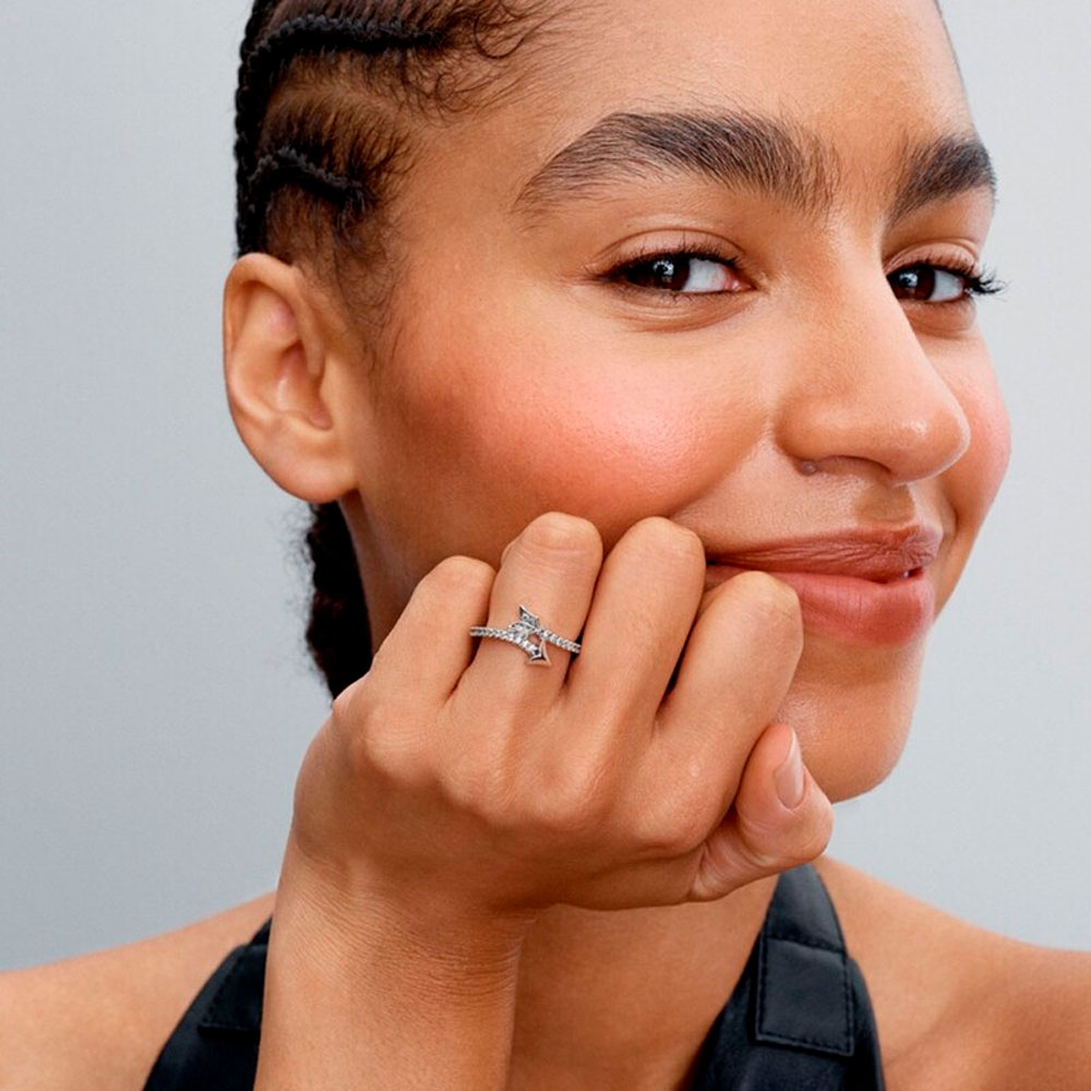 Чувствуете стрелы Амура? Кольцо "Блестящая стрела" олицетворяет выразительный мотив стрелы, изготовленной из серебра 925 пробы. Полудорожка с паве гармонично повторяет форму стрелы, с изящным заостренным кончиком и изогнутым оперением. Сочетайте его с другими минималистическими кольцами для создания современного образа или носите соло как символическое украшение, олицетворяющее любовь.