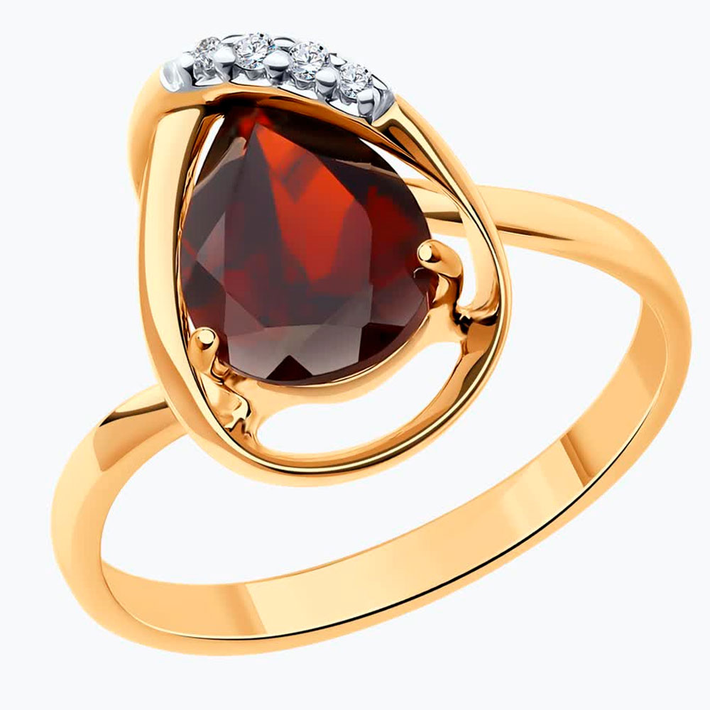 Кольцо Diamant из золочёного серебра с гранатом и фианитами 93-310-01919-1