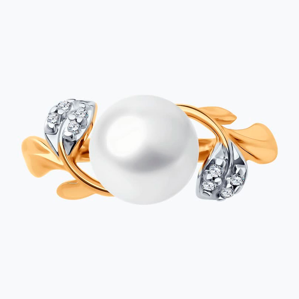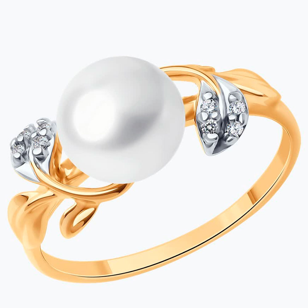 Кольцо Diamant из золочёного серебра с жемчугом и фианитами 93-310-01961-1