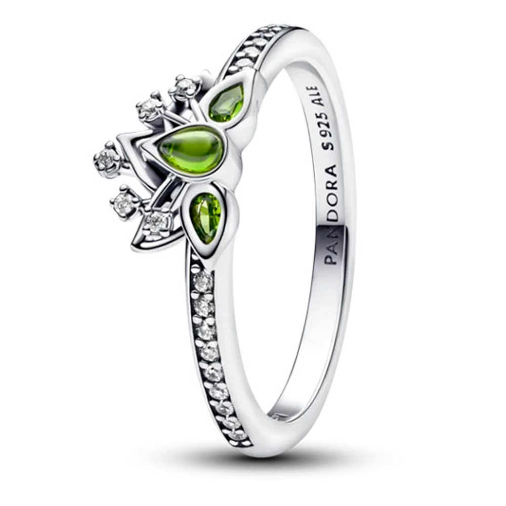 Будьте неподражаемы, как диснеевская Тиана, с этим кольцом Disney. Очаровательный дизайн, выполненный из стерлингового серебра, включает три светло-зеленых кристалла грушевидной формы, дополненные 18 бусинами и 5 зубцами круглой огранки кубического циркония. Вместе камни создают форму лилии с ажурными листьями, украшенными более мелкими камнями, которые имитируют диадему диснеевской Тианы. Привнесите энергию принцессы в каждый день с этим особенным кольцом и носите его как напоминание о том, что нужно верить в свои силы и сиять.