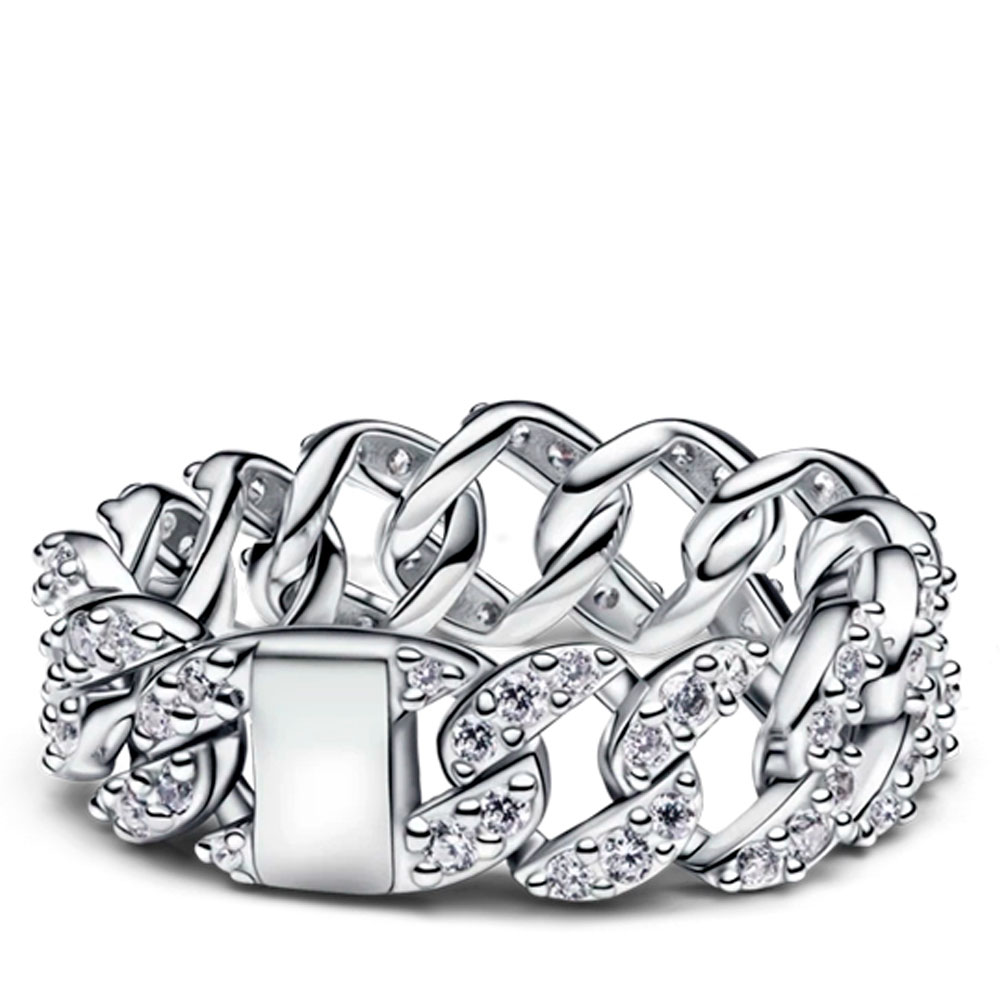 Кольцо Кубинское плетение с паве из стерлингового серебра придает элегантность 84 бусинам круглой огранки из прозрачного кубического циркония. Кольцо выполнено в виде изысканной цепочки и украшено паве из трех камней на каждом полукольце, что придает ему поразительный блеск. Полированная задняя часть обеспечивает комфорт, а плоский логотип придает изысканность. Наденьте его с любимым вечерним нарядом или элегантным костюмом, чтобы создать изысканный и элегантный образ.
